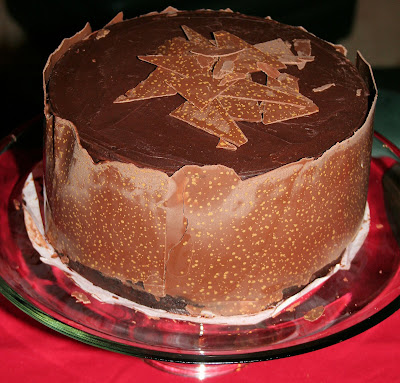 I’m going to call this cake creation a Chocolate Orange Ganache Layer Cake. There is no recipe to link, because it is a Barry creation, based on a flowerless chocolate cake recipe layered with regular cake and ganache and whatever other flavors we are in the mood for. I may get Barry to do a post about it. I helped this time, frosting the cake with ganache, and experimenting with chocolate transfer sheets. (I bought mine here). You use a tempered chocolate, or a chocolate meant for candy dipping, and spread a thin layer of chocolate on the transfer sheet. It “transfers” the edible design onto the chocolate. Our design had gold flecks. I’m going to say that we were going for this kind of rustic, messy presentation, and you’re going to try and believe me, right? I think it will take a little more practice to master working with chocolate like this, but it’s a lot of fun to think about the possibilities!