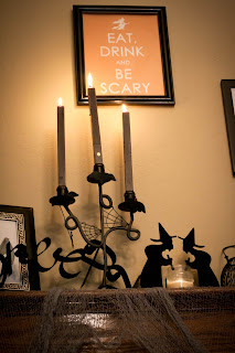 I have that same swirly bat/ spider candlestick holder! Your mantle is GORGEOUS!