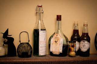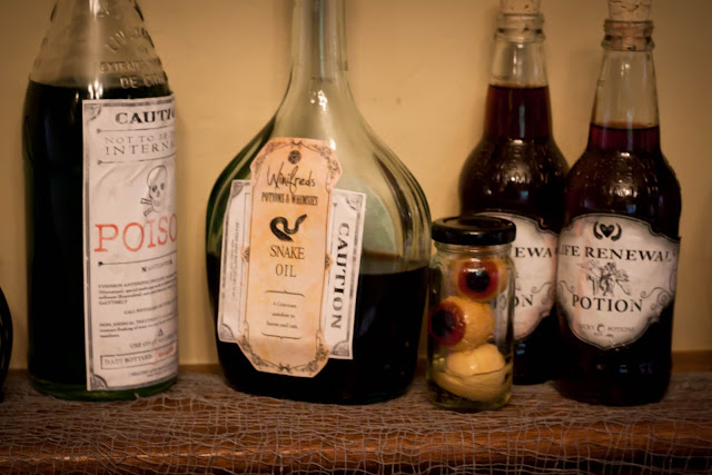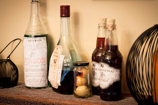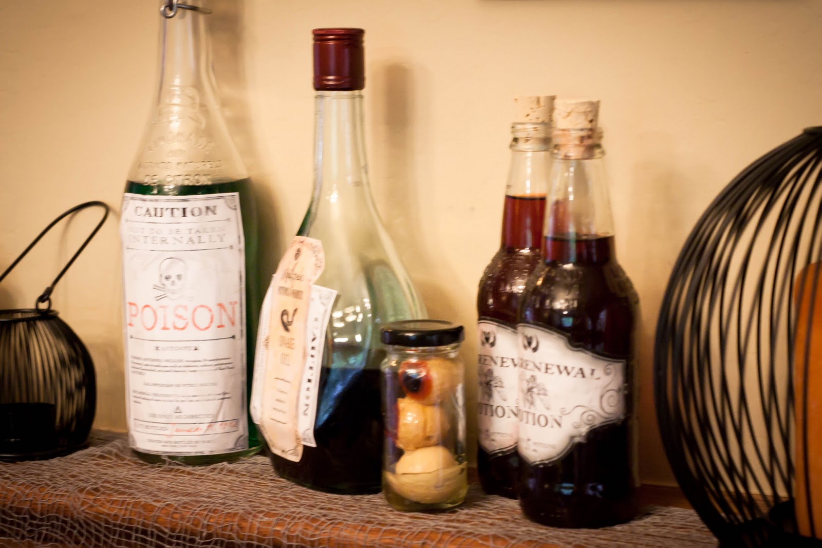 I love every detail! Gotta love those blog friends! The poisons and potions are so cool, and I looove those bats! How awesome that you're daughter could help you get it done!