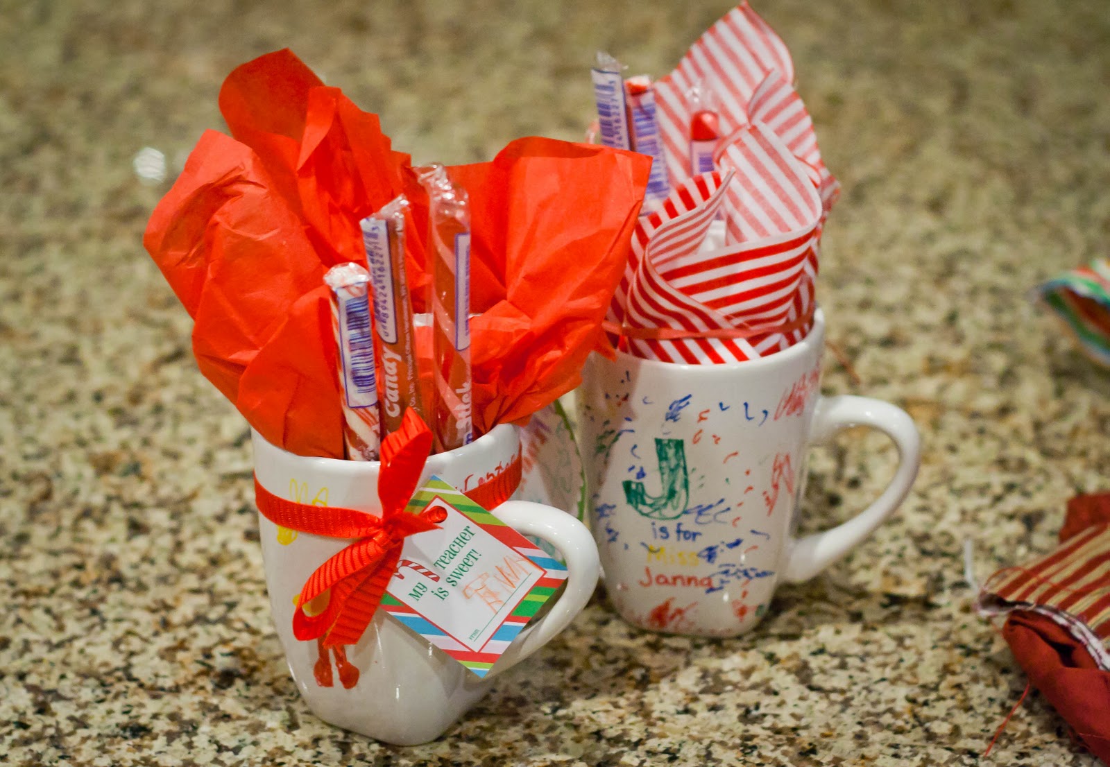 They just got home and said that their teachers loved their gifts! If you like this idea you might like the scrabble tile necklaces they made a couple of years ago. That way their teachers can remember your kids forever…in a good way…hopefully! 🙂
