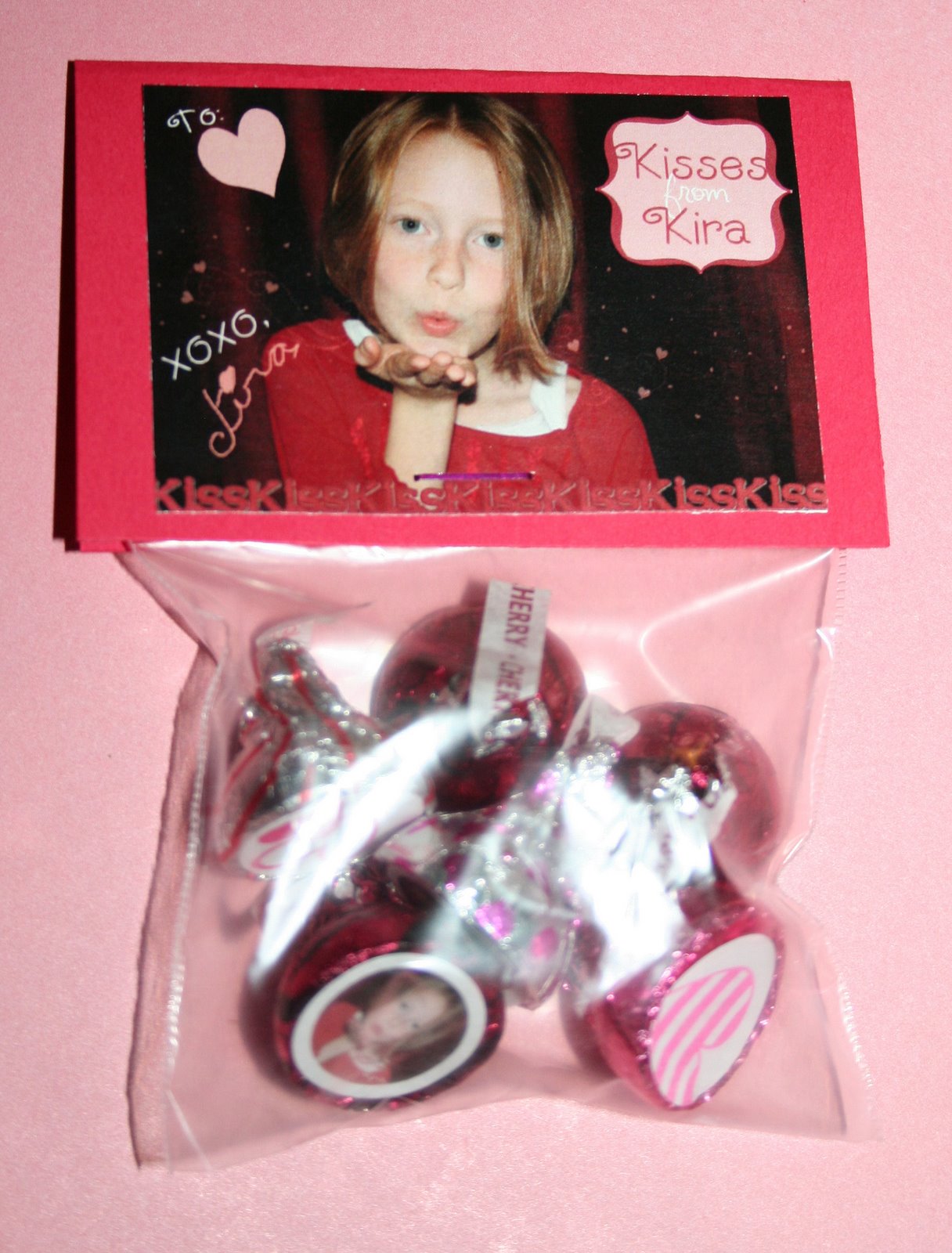 I was so excited about giving “Kisses from Kira” that year. We put her face on stickers on some of the kisses, as well as on the treat toppers.