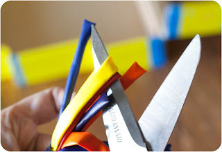 The next weekend, my 3 year old had a birthday party to attend. There were still balloons hanging around, so, I thought it would be fun to make another bow to put on her gift bag. I took some pictures this time, to share with you.