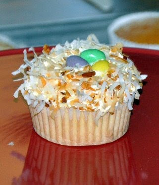These coconut nests, might have looked a little better when I posted about them here. I toast the unsweetened coconut to make the nest, roll the frosted cupcake in the coconut and add jelly beans. (Easy Peasy!)