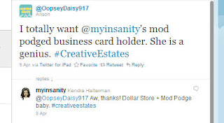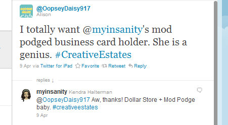 Ha! I just saw this.. Love the pic of my tweet! That makes my day. Yes, you are definitely a genius!! LOVED our time together at Creative Estates, girl! SO relieved that our blogging friendship holds true IRL (just learned what that stands for!), too!