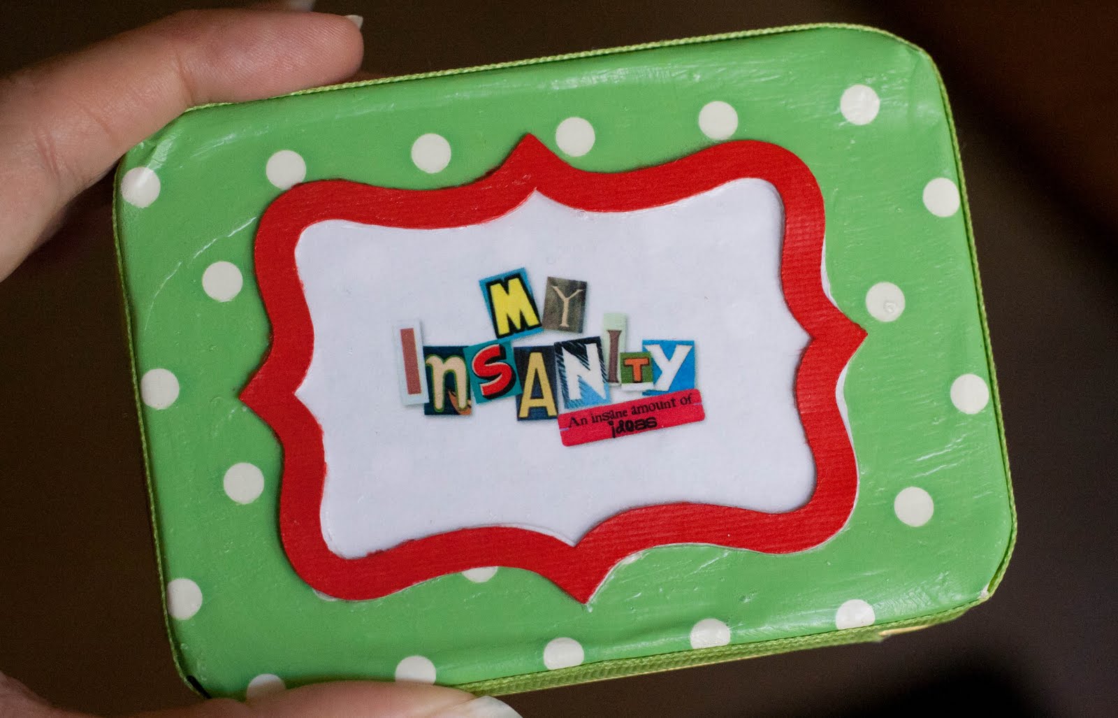 Some how my before pictures didn’t take, so I can’t show you the Winnie the Pooh puzzle in a tin that I bought at the dollar store (Dollar Tree) for–get this–$1! I took the 25 puzzle pieces and put them in a ziploc and went to work covering up all of the Pooh (spelling is important in this sentence).