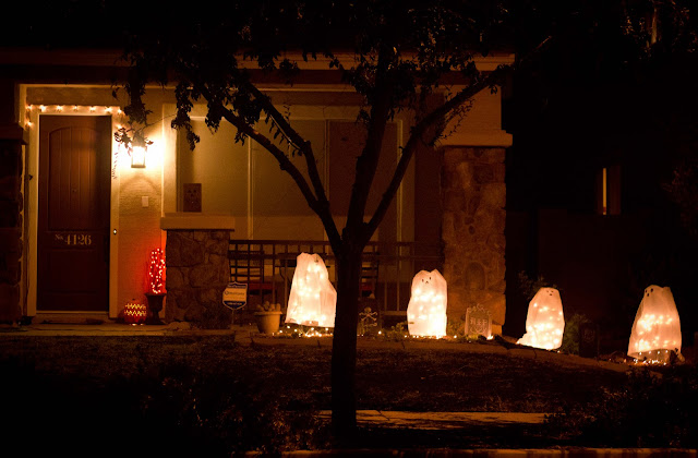 I wish I could find a way to light up our giant spider web at night. I love how it looks down on the ghosts.