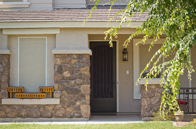 Several months ago, I asked for your help. I wrote this post about my dislike of security doors. We live in Phoenix–which isn’t known for being the safest city in the nation, and we live in an area of Phoenix which isn’t known for being the safest place in Phoenix. Don’t get me wrong, there are a lot of wonderful things about the area where I live, but helicopters buzzing overhead each night, watching the cops take down a guy in front of my house, and the recent vandalism of my minivan (spray paint can come off with Soft Scrub and 3 or 4 hours of elbow grease, FYI), are not among those wonderful things. BSB has been gaining more and more ammo for his security door request, and resisting solely on the ground of aesthetics didn’t seem so reasonable anymore. But not being willing to sacrifice the curb appeal of my home, I began a search–a quest, really–to find a door that I didn’t hate. Would it be possible to find one that I actually liked???