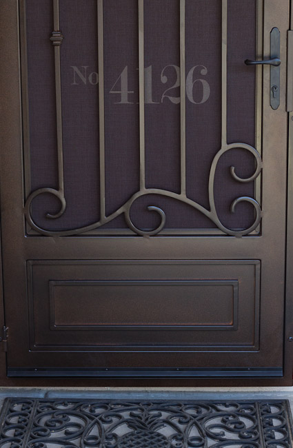 - Cookie cutter, I am not! –It might be a bit of conceit that makes me recoil at doing the exact same thing as everyone else. If I’m going to have a security door, I don’t want it to be the same one as every other home in my neighborhood. And I’m not willing to resort to kokopelli and coyotes to change that (see problem #2).