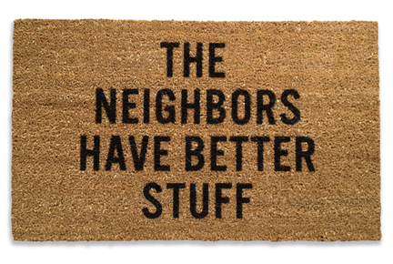I began to think that I would never find a door that would meet my requirements for design and my husband’s for security. I thought I should try and get him to purchase this doormat, instead: