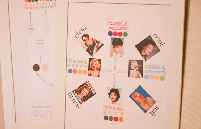 I’m a Clear Winter. It’s hard not to feel pretty when you fall into the same category as Elizabeth Taylor or Audrey Hepburn. It was actually really amazing to me to see the difference between the pale blue and the deep blue colors on the drape we tried. When we had the deeper color up to my face, my skin imperfections seemed to fade, and my features popped. I knew this concept before, but hadn’t realized the dramatic difference it made.
