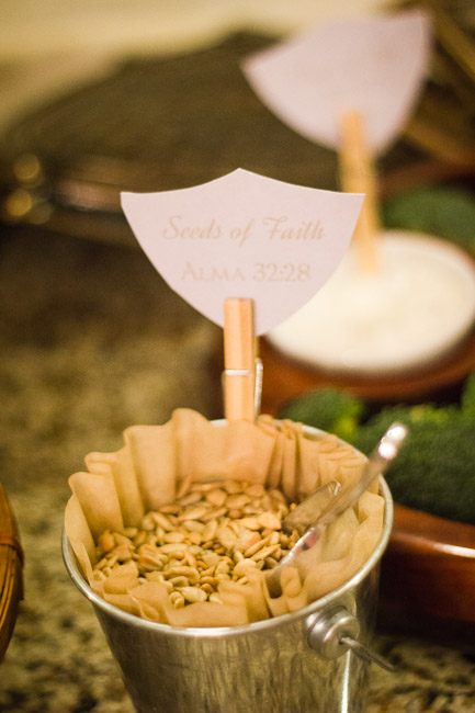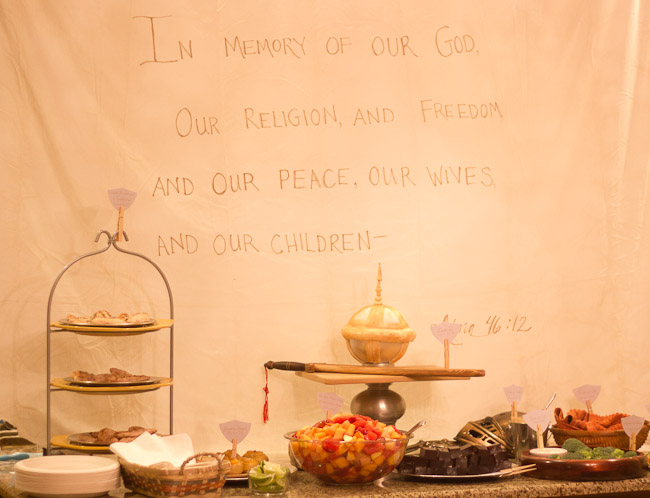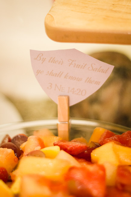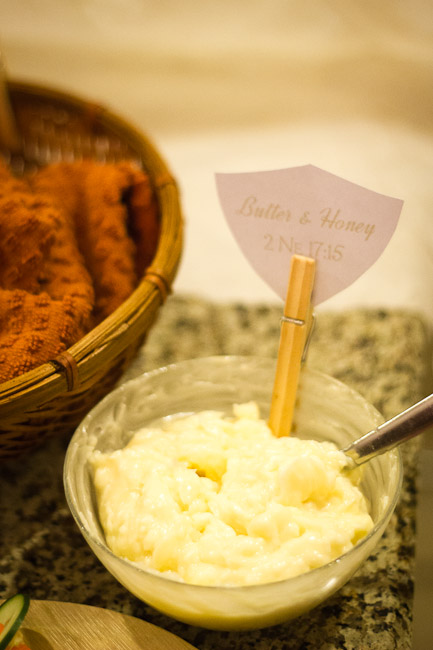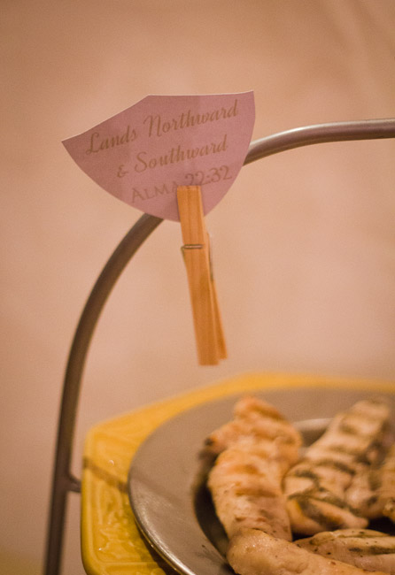 After making my son’s special baptism invitation, I wanted to carry the theme through to our dinner celebration after the baptism. At first I wanted to do a Book of Mormon mystery menu, like my sister had done before. BSB vetoed it on the grounds that it would be a lot of work to serve, and a bit silly after such a sacred occasion. He did have a point, but that didn’t mean I couldn’t still make a Book of Mormon-themed buffet.