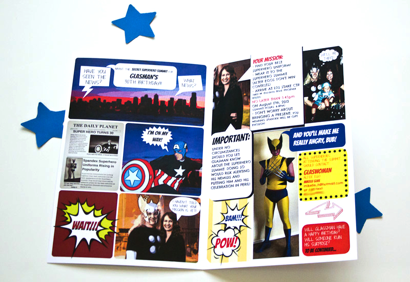 […] shown you the comic book style invitations and save the dates I made for my brother-in-law’s surprise 30th Superhero birthday party. It’s about time […]
