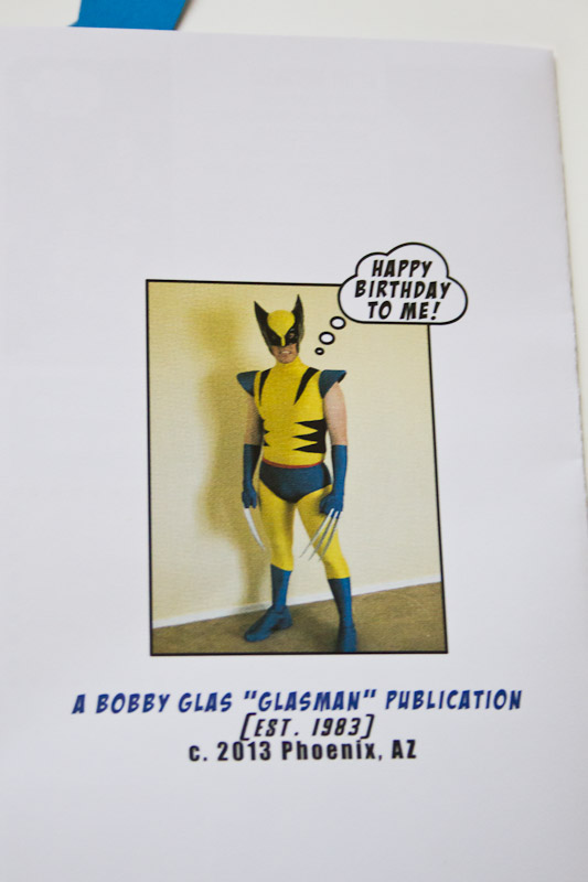 The inside was more difficult to put it all together in a form that would look like a comic book, but still give out the important information. Luckily since the birthday boy is such a superhero/comic book fan, we had lots of pictures of him and his family to work with. There are some apps you can buy that transfer your photos into comic book art. I did use these, but tried to find the least dramatic settings so that you could still tell who was in the picture.