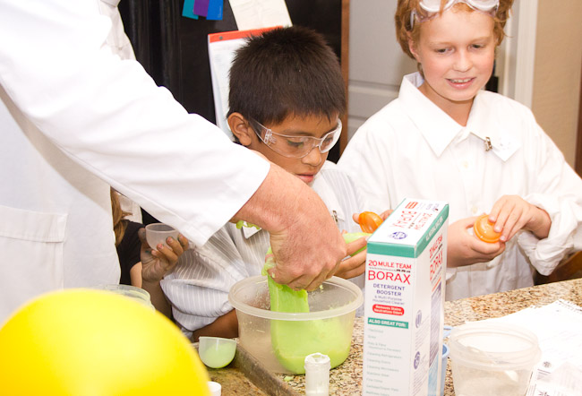 He proceeded to alternate between scientific demonstrations that he performed for the kids and projects that they did themselves at their stations. We had lots of experiments on tap and actually ran out of time to do them all. For a comprehensive list of science project ideas, visit my Mad Science Pinterest board. Here are some of the ones we did:
