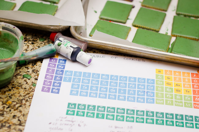 Then I just used an edible ink pen to write each element and it’s number on each cookie. Then I lined them all up on a couple of foam boards to make the display. It was fun to watch everyone choosing their favorite elements!