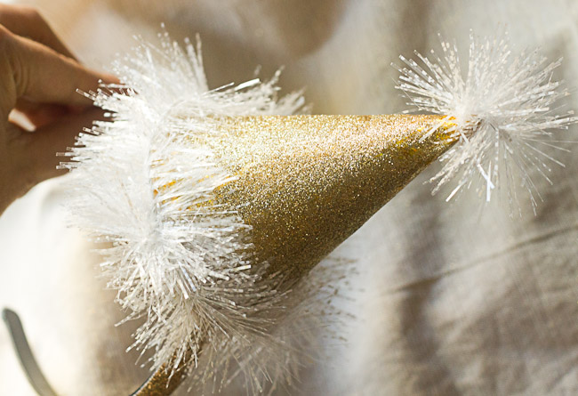Or maybe you want to make some cute, sparkly hats like we did last year. Attach the tag and they make a fun gift for your friends or favors for your party guests!