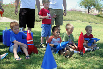 The birthday boy was a little grumpy that his nose cone got a little smooshed after a particularly lengthy launch. Ah, the perils of space travel! But despite this grumpy face, he and his friends were thrilled to see their rockets fly!