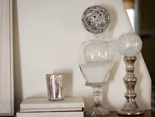 (Lighting in this spot is tricky). I completely shopped the house for this mantle, except for that mercury glass candle that I found unmarked in the Christmas clearance at Target and took home for 50 cents.