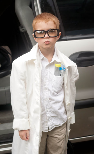 Yes. He is a scientist. And probably would have been able to pull off the “mad” part of scientist better if we hadn’t buzzed his hair to match his friend for twin day. (He was being accused of having Bieber hair, and it was embarrassing him. I kind of miss the tousled red hair).