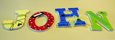 Actually, a whole name this time! Kameron made these as a gift for a new baby. The possibilities are endless! (See previous post)