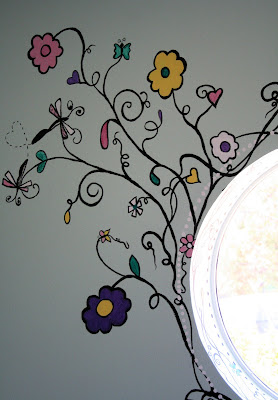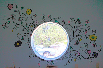 I did this in my MIL’S laundry room over Memorial Day weekend. It is hard to get a good photo with so much light coming in, but I took inspiration from the digital brushes and frames (available now at places like Little Dreamer Designs) to frame this window. The doodle art could be fun in a child’s bedroom, a scrapbook/craft room, or any place that you need a little fun!