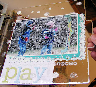 Check out my friend, Becky’s blog, all of you serious scrapbookers, for all of the details on this “cool” acrylic album. Super cute, and quite challenging, as everything is visible, through the clear pages. It all has to work together and you can’t necessarily hide the messy back sides of things. She chose the perfect subject for this medium. Maybe I just love looking at it, because it makes me feel cool in our 110 degree weather. Isn’t this fun?I love her use of paint. This is the first I had ever heard of acrylic albums. (I’ve been hanging out in the digital world, lately). I think she got most of her materials at Hobby Lobby. Go to her page for more specs and to see the cute snowman she made on one page.