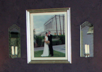 #6–(Super blurry picture…Sorry!) The wedding picture grouping on that purple wall. We enlarged and framed this wedding picture, and flanked it on either side with these candle sconces from IKEA. They are pretty and actually give off a lot of light. (hmmm…IKEA, I’m starting to notice another pattern here.)
