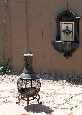 #10–Does it count if it is outside? My fountain and the chiminea. Fun furnishings like this can help me make believe that my patio is somewhere more exotic than Arizona.