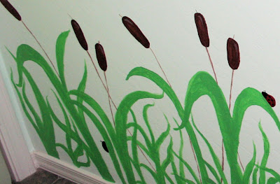 #7–Kids’ bathroom mural. Back to the paint, here. I suppose this isn’t the best for resale appeal, but what can I say…my house was my canvas! I had fun painting cattails and hiding ladybugs around the pond-themed bathroom. (And the kids had fun finding them!)