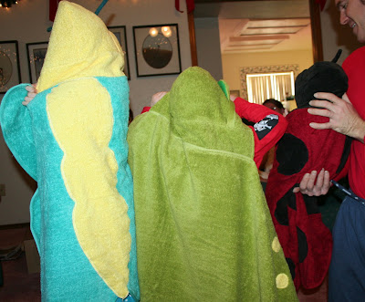 These hooded towels were a team project last year by my miracle worker mom and me. I had the vision and she had the skills to make them happen. We bought towels in various colors and turned them into these hooded towels. Although I don’t have a good picture of it, the ladybug is perhaps the cutest—my daughter LOVES her towel! We rounded the towel so it is more of a ladybug shape and my mom put the binding back on to give it a finished edge. I love how the antennae stick out. Tessa loves to grab on to them after she gets wrapped up in her towel!
