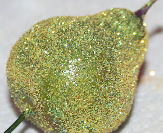 Good guessing! I will reveal soon. I am a bit more specific than most of you are guessing. I did glitter the pears and will post about that soon.