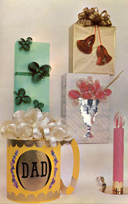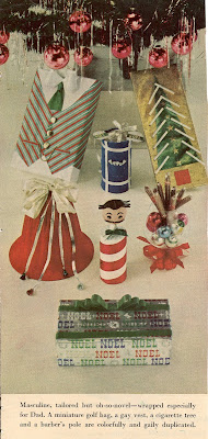 I have to share these fun gift wrap ideas I found. We are visiting my parents, and I found out my mom used to instruct a course on creative gift wrapping, long before I was born. She pulled out a file of favorite ideas she had been saving all of these years, and I knew I had to share with you, just in case any of you have everything but gift-wrapping finished, and want a little vintage insanity in your Christmas this year (I am not finished, so will probably not be using these techniques, this year, but aren’t they fun to look at?)
