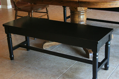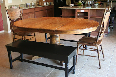 Lately I've seen lots of cream/stain combos i.e. like the project you just did. But I've also seen the stain and black together and it looks pretty cool. So it would be cool to do the top of the table what you were planning on doing and the rest black…and just leave the benches black (or sand down top and stain them like the table top)…this probably doesn't make sense but just thought I'd share!