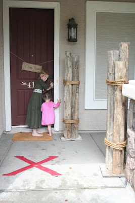 2. The Port Posts: I’m not really sure what to call them, but they did lend a lot of atmosphere. I lucked out on these and did not make them. They had been made as part of a backdrop for our naval-themed girls camp, and I begged them for the party. The girl that did make them, had the large fence posts from her Grandpa’s ranch, I think. They were attached to the base and bundled with thick rope. I think the rope ends were actually screwed into the wood. I know heavy duty rope like that can be expensive, but if you have some firewood or other supplied laying around, you might be able to make a smaller version, inexpensively.