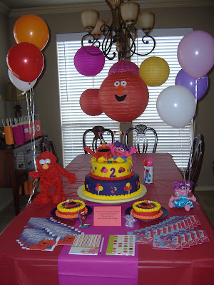 The cake at this Elmo and Abby party is amazing! And I love the use of lanterns above!