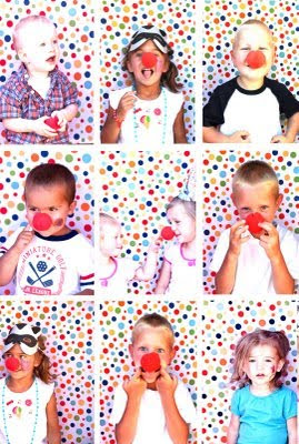 And they don’t look very expensive or hard to do. Just a fun fabric backdrop and a clown’s nose (and some one who knows how to take a nice photograph!)