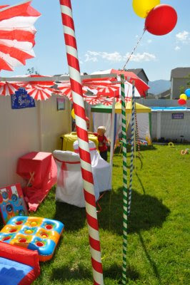 I think it would be really cute, to make coordinating signs for each of the booths and have them printed (red and white stripes with circus font lettering), and smaller ones for the food available at the concession stand.