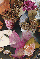 Decorations – By having the party in a garden or patio, weather permitting of course, you can cut down on the cost of decorations. Let nature do the decorating. With fruit bowls as the centerpiece, you can have additional decorations for each place setting. I suggest the flower pot pen and tulle tea bag sets for each person. They are simple and great as a take home gift.