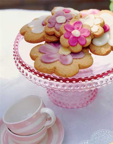 Let them eat cake! – All good tea parties must have desserts. How much fun to decorate flower-shaped sugar cookies together? Petit fours and scones are a must. How appropriate is the name Petit Fours? Who can eat just one? It takes at least four to equal one slice of cake, right? I am not a great baker, so I have to buy these from my local bakery.