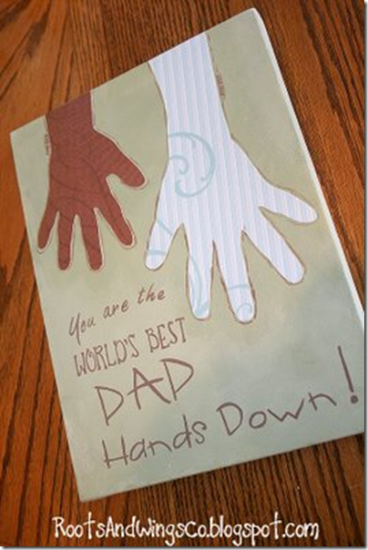 Thanks to those who have linked up to my Father’s Day Fun linky party! I still have a few more posts coming this week about Father’s Day, and some of those ideas will be featured! You can continue to link up all week (I will), but I had to choose my winner today, so I can send out the Father’s Day cards in time. And I chose this idea from Roots & Wings Co.! I love that it is a clever way to incorporate kids’ hand prints into a meaningful work of art. You could use the same concept for cards or even a banner. Endless possibilities! Congratulations, ladies!