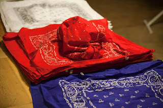 I found you through Flamingo Toes. Go to: http://www.oriental.com which will take you to Oriental Trader. They have those bandanas and have them in other colors too (if you wanted it non-patriotic).