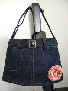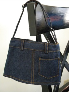 Sophie Laree carries adorable flower clips pins and headbands, and other fun finds like this amazing denim miniskirt purse: