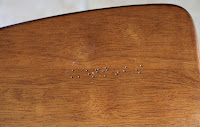 These chairs (here is where I found them on CSN) are really sturdy, and pretty easy to assemble (I had my husband put together one, while I put together the other one, to make sure I didn’t mess it up). They have just the right amount of distressing–although my daughter was disturbed by the wormholes in the seat, and couldn’t understand why they would be there on purpose. 🙂 I am excited to show you the whole dining room once I complete the table makeover, but honestly, with the new chairs and some fun placemats I picked up at Pier 1, you almost can’t tell how badly the table needs to be refinished (which makes its makeover easier to procrastinate).