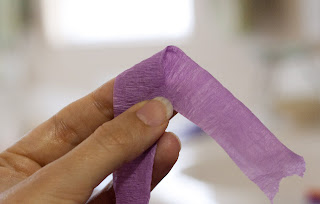 I started by folding the crepe paper in half lengthwise. Then folding down a point 3 inches or so from one end.
