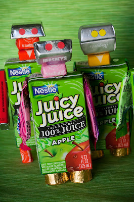 It's the same everywhere! My daughter's 6th birthday is Friday and I'd love to make my homemade healthy cupcakes and I'm not allowed. To be honest, it's really stupid b/c I could just as easily poison store bought stuff as I could homemade stuff! HAHA Not that I would do that… just saying! However, your idea is FABULOUS! I love it. My daughter is a bit too girly for robots, but now you have my brain ticking as to what else I could make with sealed candies 🙂 Thanks for the inspiration!