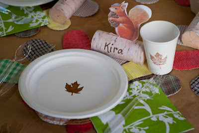 But the big hit were these goody filled logs with squirrels perched on top! The printable came from Martha Stewart. Not only were these great placecards, but also a good bribe to get the kids to try all of their food before they got to see what was inside their special log.