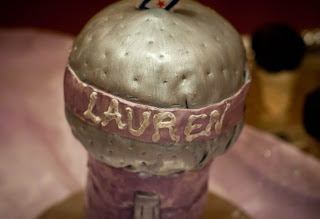 […] have enough. I would also paint the metallic luster dust on parts of it like I did with the microphone cake. Starbursts make great buttons and you can really use any candies to make a face. The candle on […]
