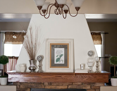 (Lighting in this spot is tricky). I completely shopped the house for this mantle, except for that mercury glass candle that I found unmarked in the Christmas clearance at Target and took home for 50 cents.