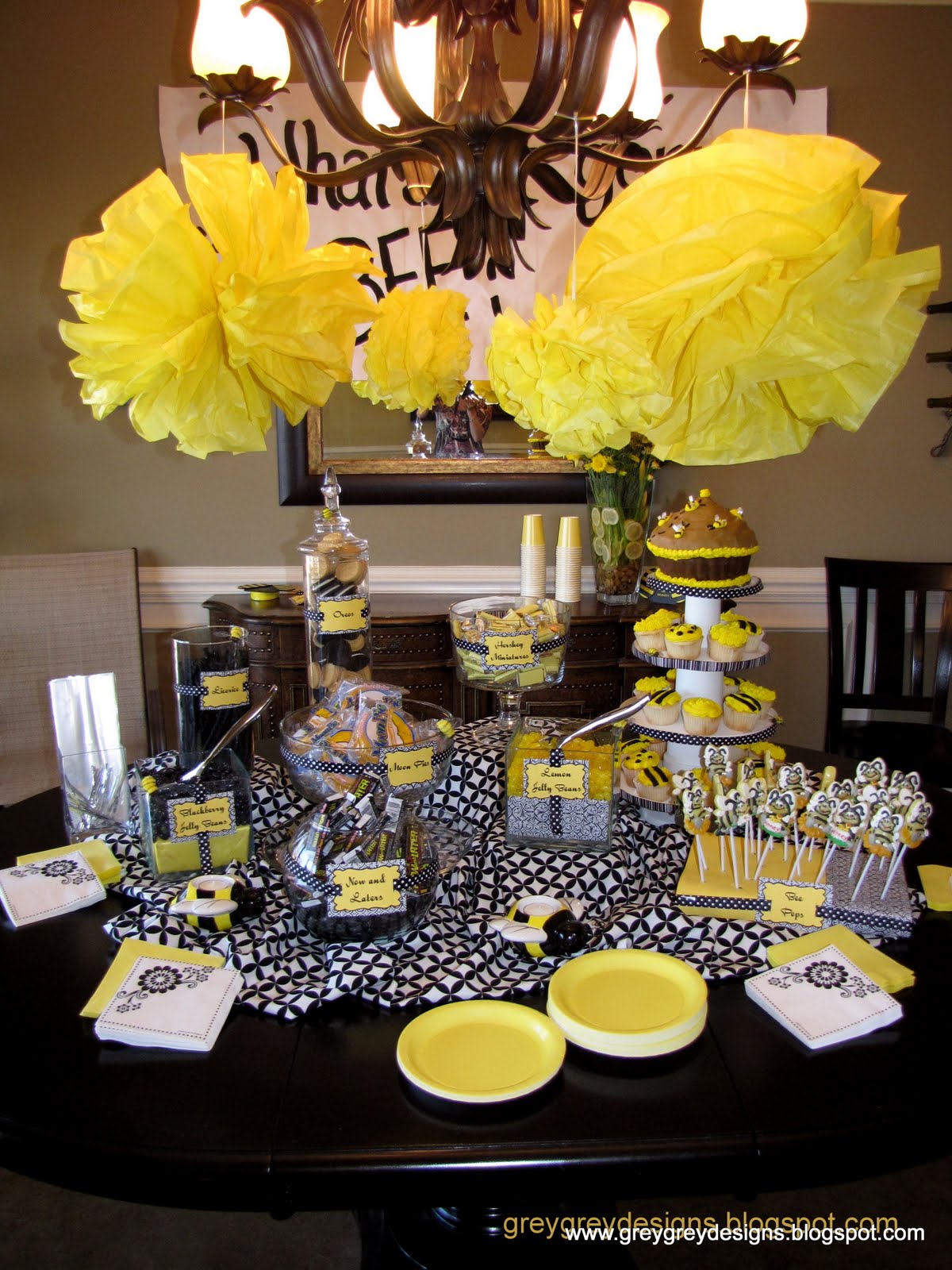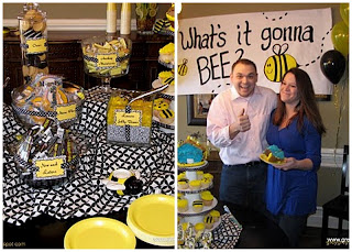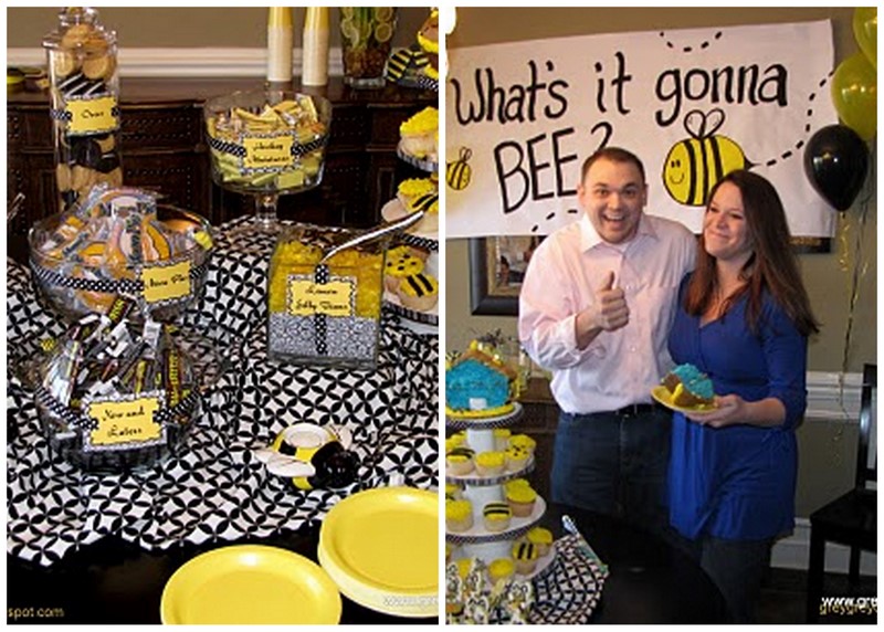 I really liked this bee-themed version by grey grey designs. The yellow and black is really fun and graphic and gender neutral-so no clues are given before the big reveal. It all ties together with the “What’s it going to bee?” sign.