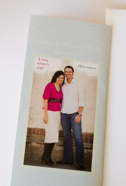And since I used a double sided design, there was room to add our current family picture. You know, one with our eyes open!
